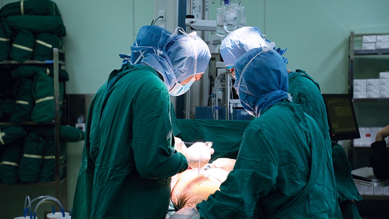 內(nèi)蒙古醫(yī)科大學(xué)第二附屬醫(yī)院的醫(yī)生利用集中帶量采購的人工關(guān)節(jié)進(jìn)行手術(shù)(2022年4月攝) 內(nèi)蒙古醫(yī)科大學(xué)第二附屬醫(yī)院供圖