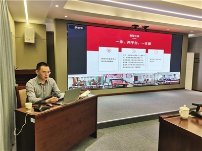 田雪冬介紹全區(qū)退役軍人信息化建設(shè)主要任務(wù)。內(nèi)蒙古日?qǐng)?bào)社融媒體記者于欣莉攝