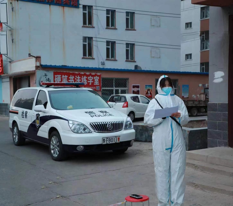 圖③內(nèi)蒙古自治區(qū)檢察院興安盟分院干警在寒風(fēng)中參與社區(qū)疫情防控。許百賀攝