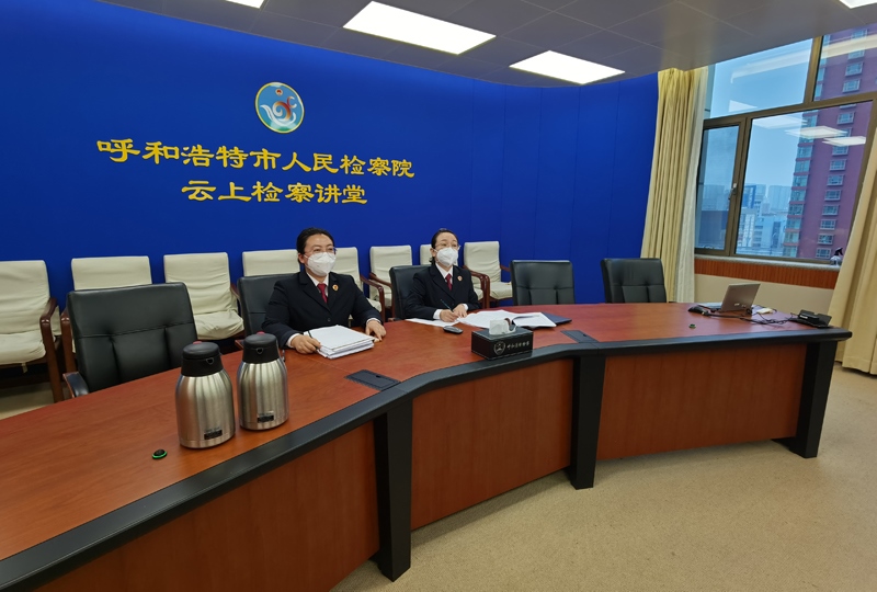 圖④11月18日,呼和浩特市檢察院干警線上參加全區(qū)民事檢察工作調(diào)度會(huì)。
