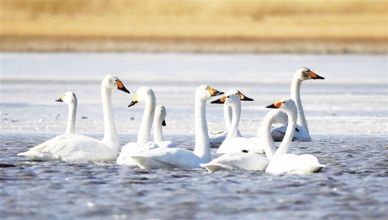 晶晶忍不住感嘆:“我和盈盈每次南飛或北遷,都要在沉湖‘打卡’,這個城市濕地已變成了小天鵝的‘會客廳’。前些年,這里可不好玩,用人類的話說,它‘曾經(jīng)滿目瘡痍,如今萬鳥翔集、水草豐美’。”