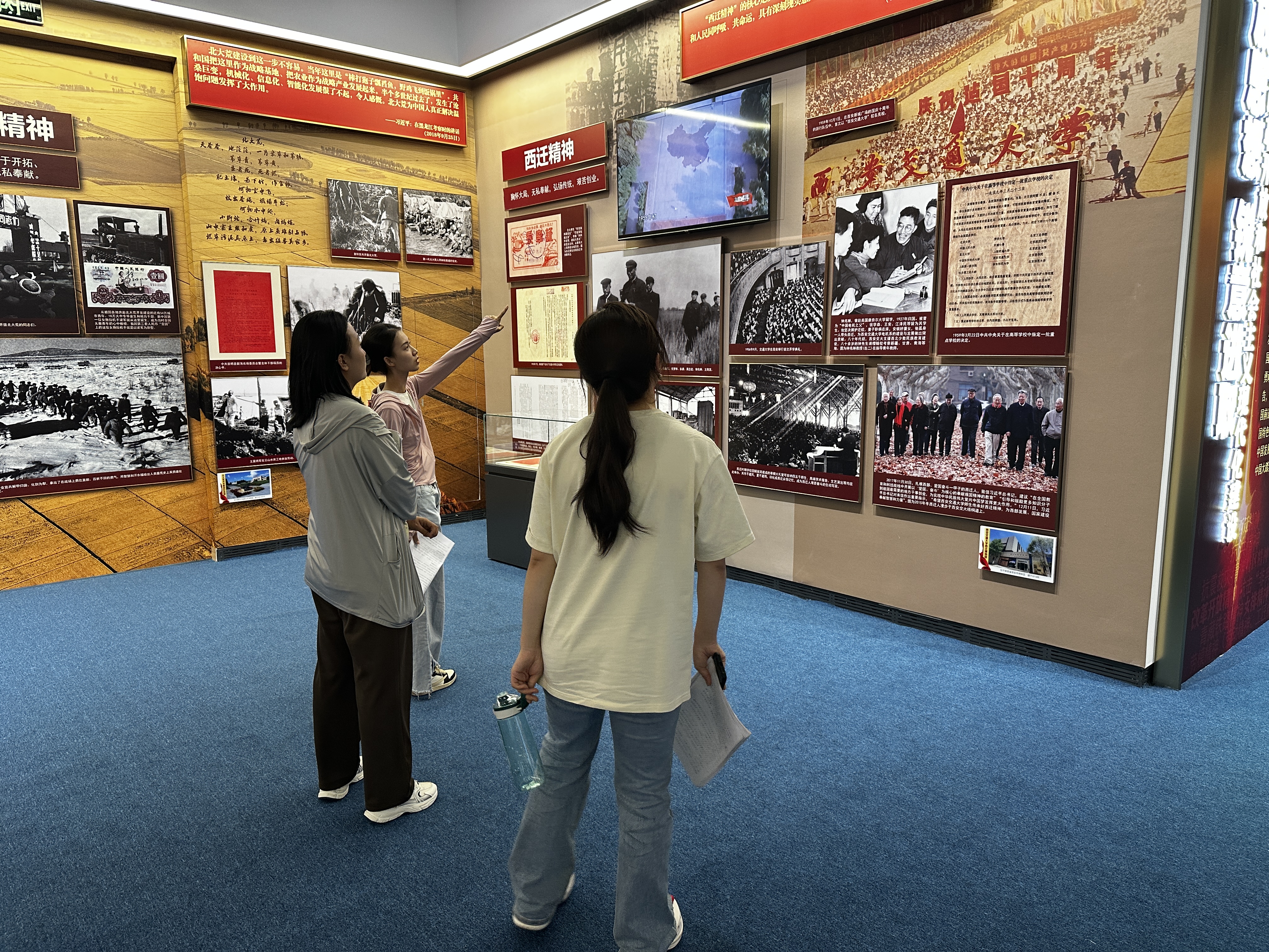 記者看到,在牛玉儒精神、“三北”精神等展覽前,圍繞著不少觀眾,他們駐足凝視,拿出手機(jī)拍攝,互相交流著。“我對這個展覽很感興趣,可以全面學(xué)習(xí)到黨的歷史?!闭f完,金橋小學(xué)學(xué)生趙峻溥在抗美援朝精神展覽前認(rèn)真地閱讀起來。