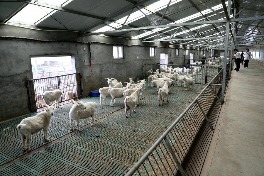 采訪團(tuán)參觀敏蓋絨山羊原種繁育中心