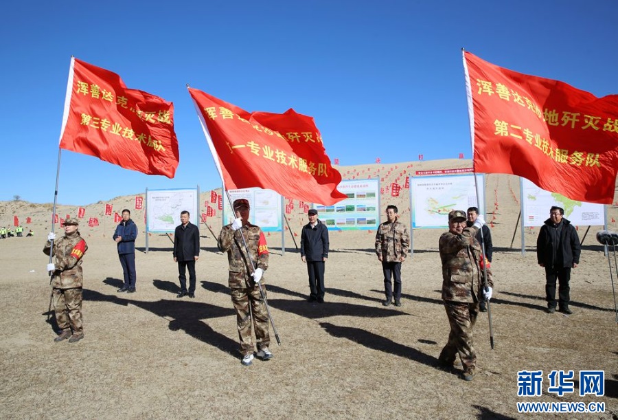 ??啟動會現(xiàn)場向?qū)I(yè)技術(shù)服務(wù)隊(duì)授旗。新華網(wǎng) 石毅 攝