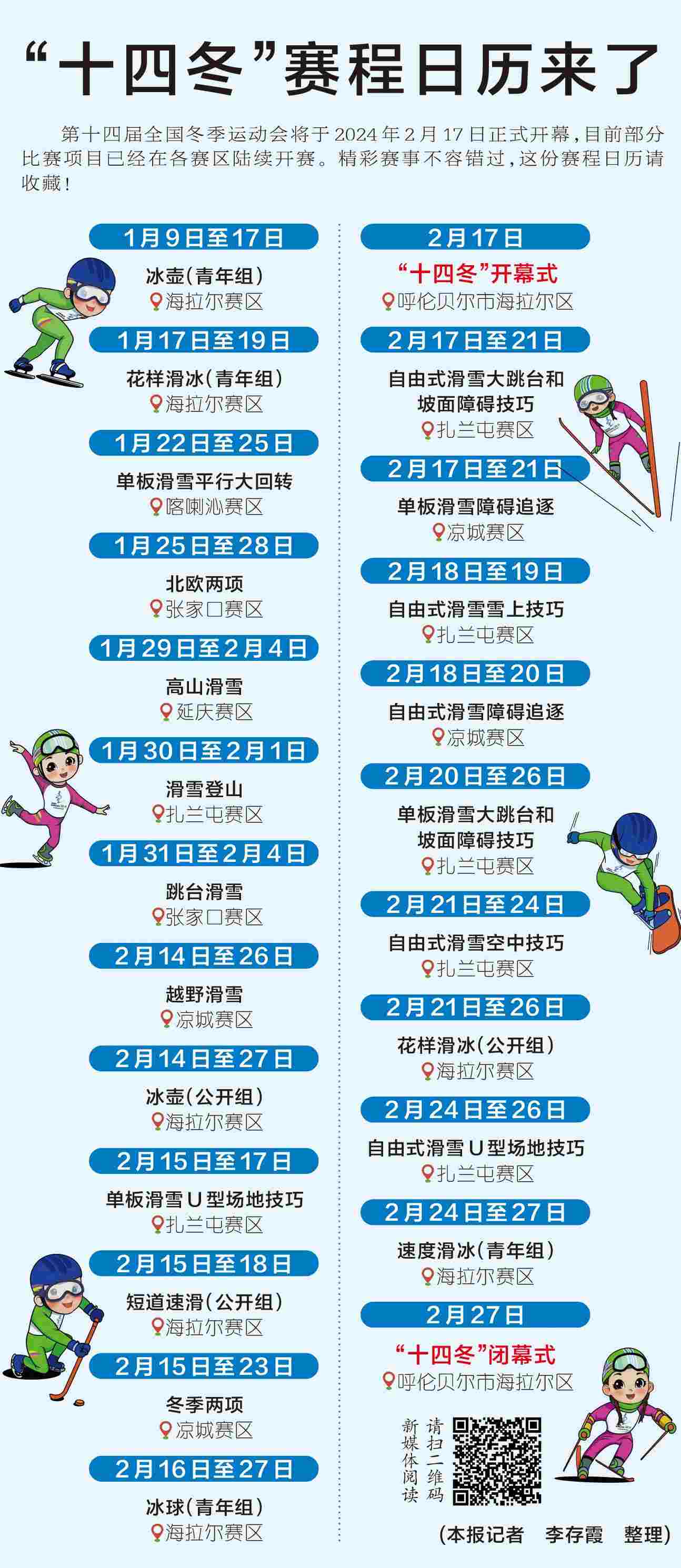 第十四屆全國冬季運動會將于2024年2月17日正式開幕,目前部分比賽項目已經在各賽區(qū)陸續(xù)開賽。精彩賽事不容錯過,這份賽程日歷請收藏!