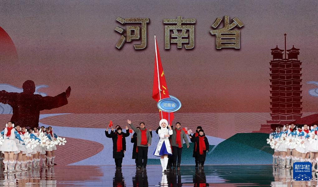 ??2月17日,河南省體育代表團(tuán)在開幕式上入場(chǎng)。新華社記者 李博 攝