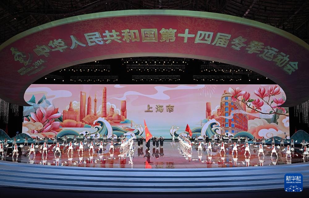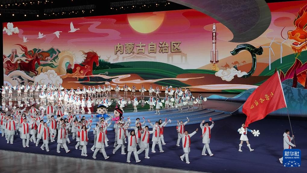??2月17日,內(nèi)蒙古自治區(qū)體育代表團(tuán)在開幕式上入場(chǎng)。新華社記者 李欣 攝