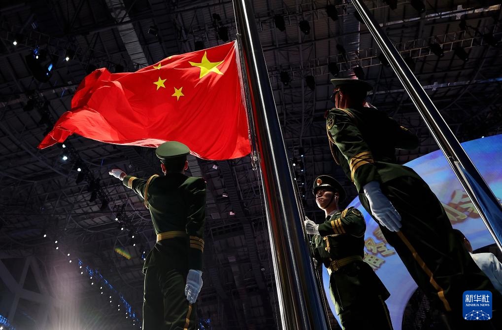 ??2月17日,中華人民共和國(guó)國(guó)旗在開幕式上入場(chǎng)。新華社記者 姜帆 攝