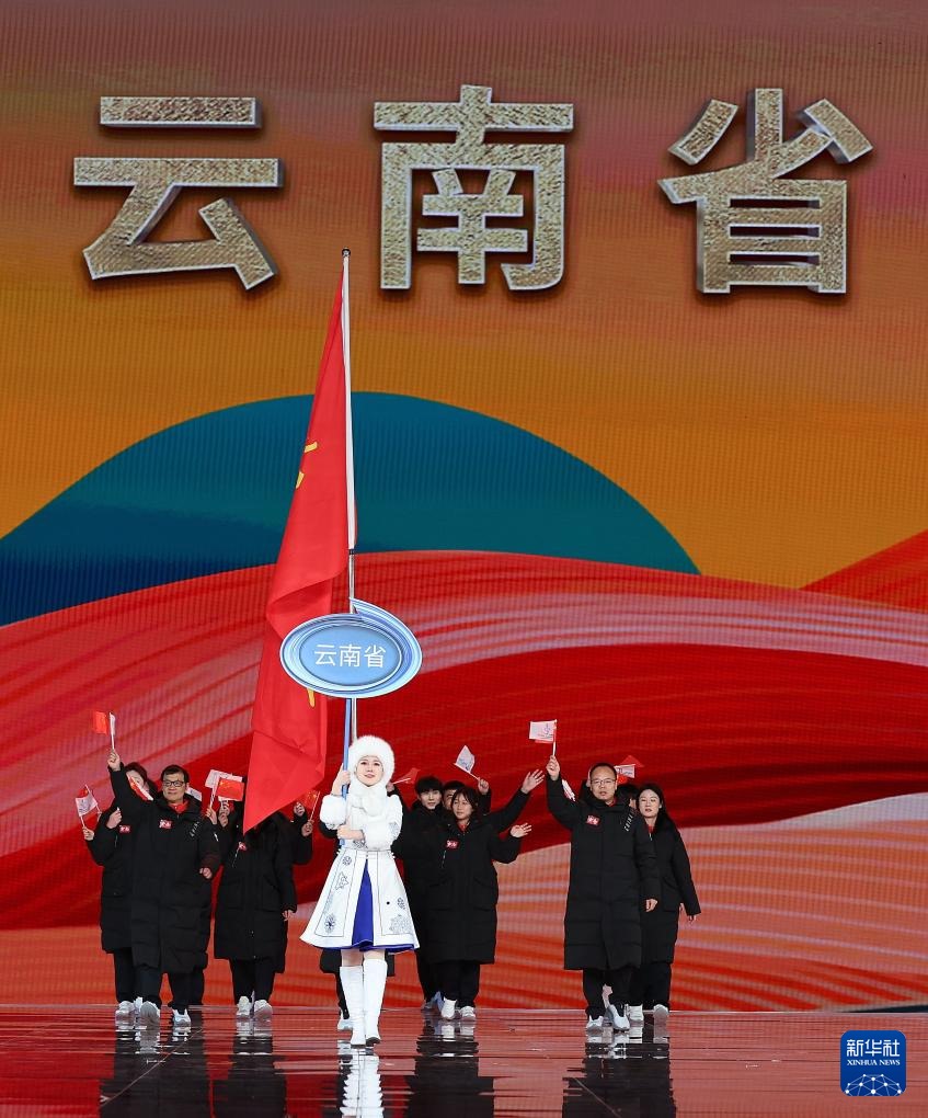 ??2月17日,云南省體育代表團(tuán)在開幕式上入場(chǎng)。新華社記者 李博 攝