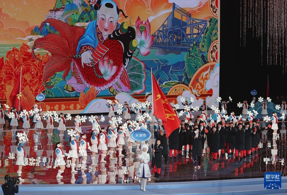 ??2月17日,天津市體育代表團(tuán)在開幕式上入場(chǎng)。新華社記者 姜帆 攝