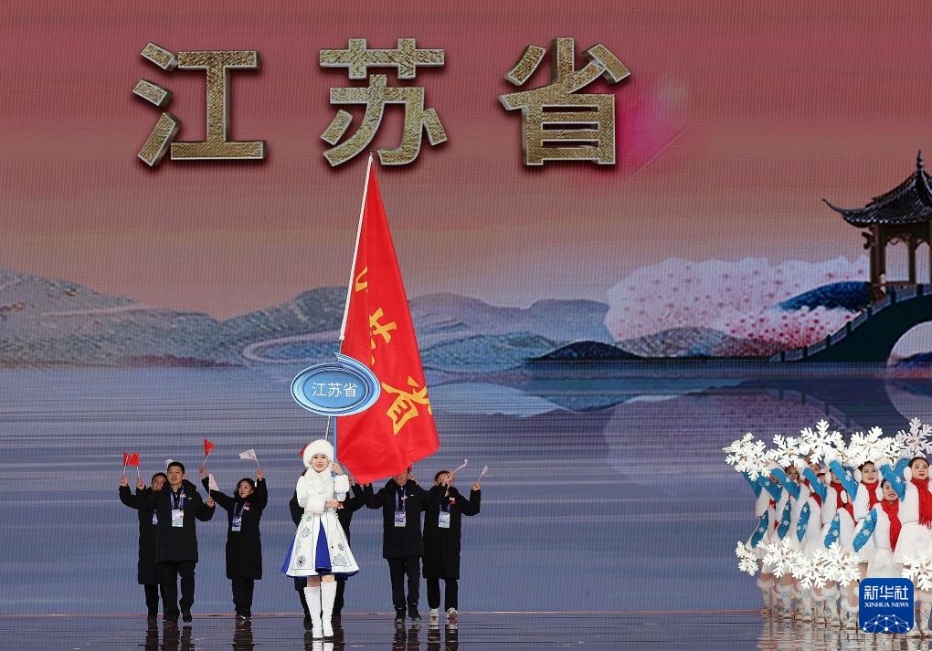 ??2月17日,江蘇省體育代表團(tuán)在開幕式上入場(chǎng)。新華社記者 李博 攝