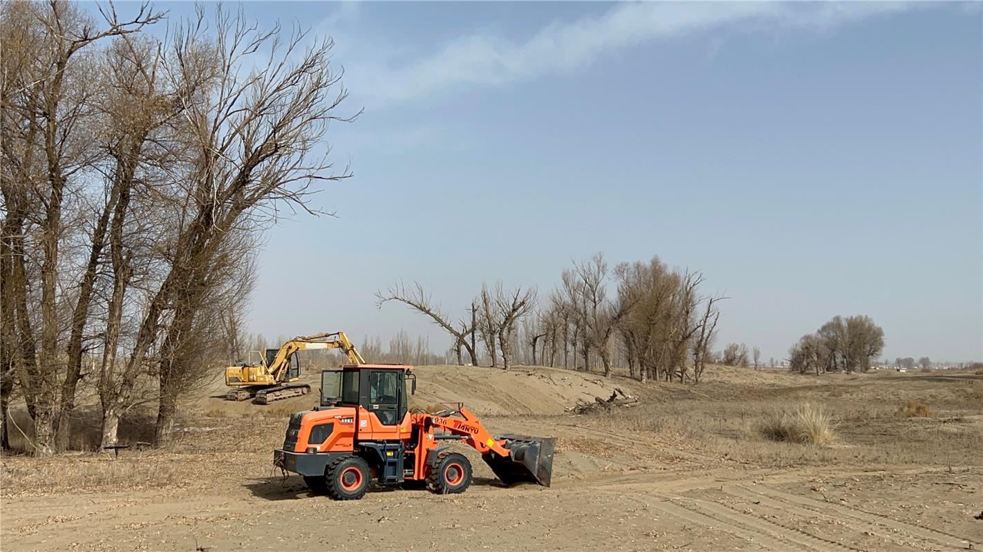2月28日,春意萌動(dòng),萬(wàn)物生長(zhǎng)。進(jìn)入巴彥淖爾市臨河區(qū)國(guó)營(yíng)新華林場(chǎng),一幅紅彤彤的對(duì)聯(lián)——“生態(tài)優(yōu)先綠色發(fā)展勇?lián)姑晃菲D難”映入眼簾,與兩旁高高掛起的紅燈籠相映成趣。另一邊,數(shù)臺(tái)大型機(jī)械往來(lái)穿梭,開(kāi)始了今年的植綠工作。