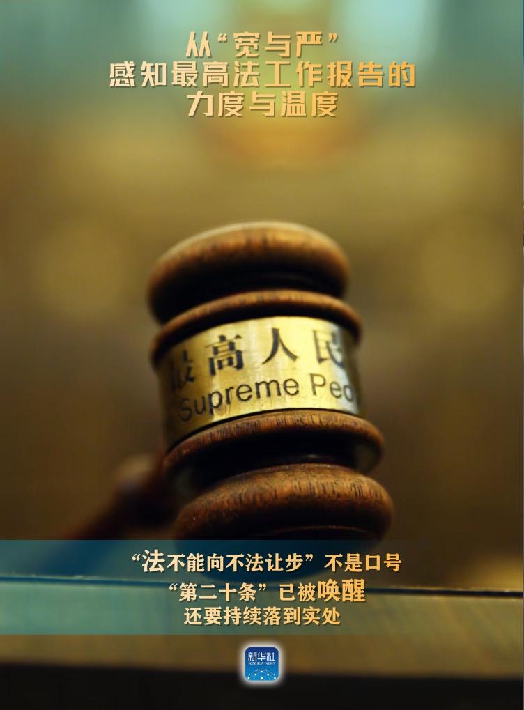 新華社北京3月9日電(記者高潔、馬知遙、袁秋岳)3月8日,最高人民法院工作報(bào)告提請(qǐng)十四屆全國(guó)人大二次會(huì)議審議。報(bào)告中列舉了不少案例,有的案件從嚴(yán)從重判決,有的從寬或無(wú)罪判決。讓我們從“寬與嚴(yán)”感知報(bào)告的力度與溫度。