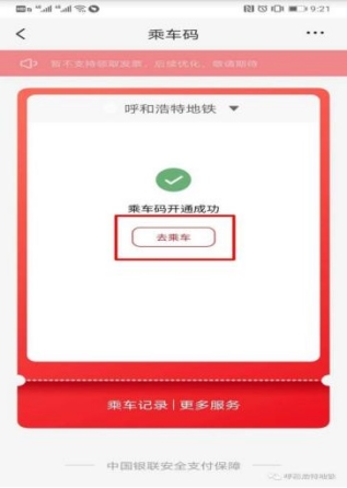 開通成功后,點(diǎn)擊“去乘車”獲取乘車二維碼,在進(jìn)、出閘機(jī)對(duì)應(yīng)區(qū)域掃描二維碼即可。