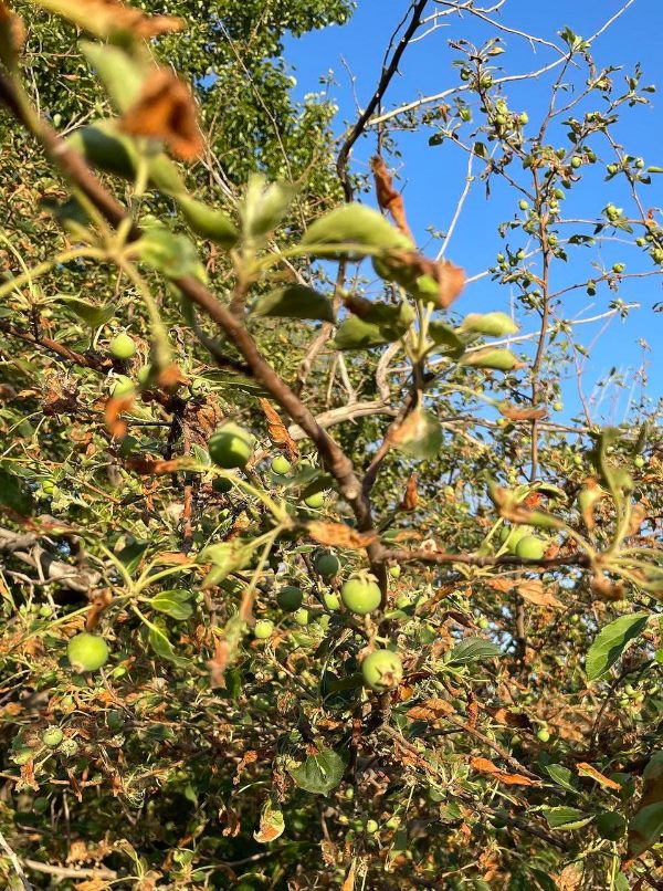 ??多年后,隨著條件改善,村里打上機(jī)井,大壩逐漸廢棄,壩下無人料理的果樹卻還年年結(jié)果。今年,又有不少綠色小果子掛在枝頭。馮玉寬每到夏天都要回來摘一點,帶回家曬果干。“這就是一種情結(jié)。小時候放暑假,我們孩子就來這吃果子,吃到肚脹……”