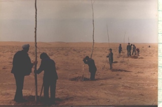 ??1990年8月拍攝的阿門其日格人在種樹。劉占峰供圖