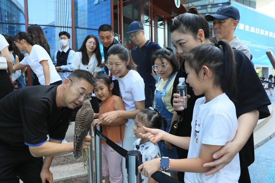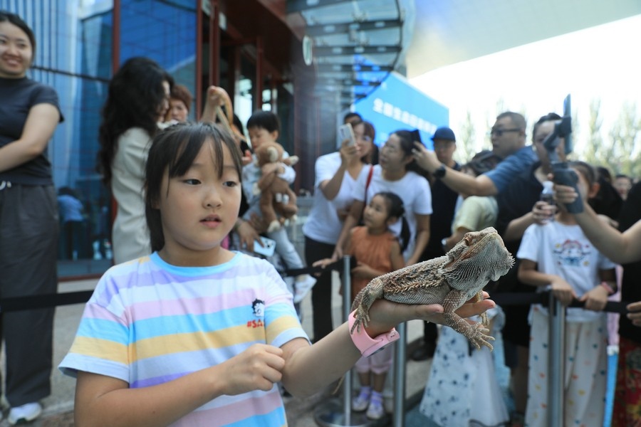 8月2日,呼和浩特。全國生態(tài)日宣傳活動現(xiàn)場,野生動物零距離互動,吸引了眾多參觀者圍觀。