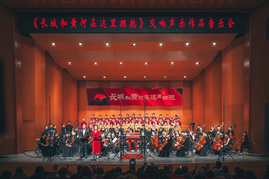12月20日晚,“長城和黃河在這里擁抱”交響聲樂作品音樂會(huì)在內(nèi)蒙古藝術(shù)學(xué)院新華校區(qū)演藝廳華美上演。