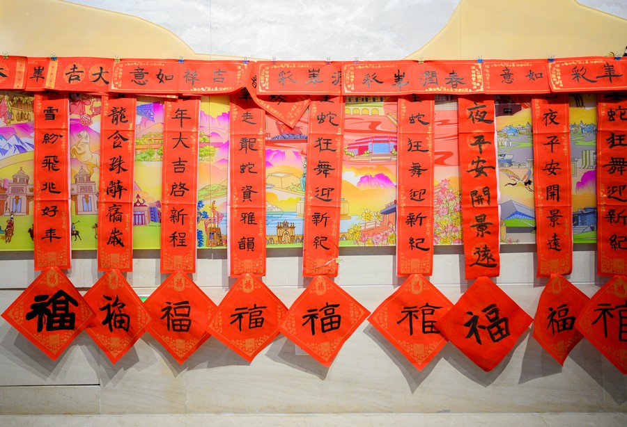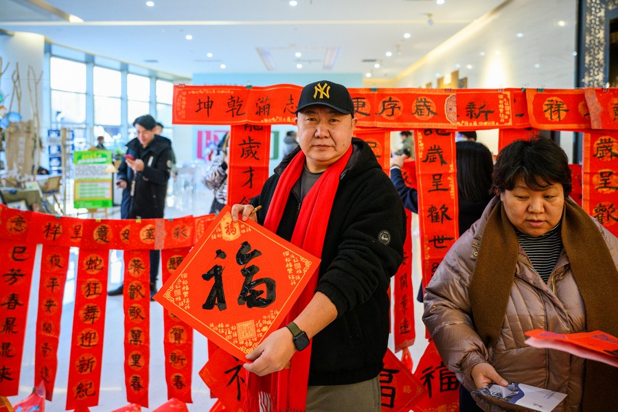 1月15日,呼和浩特市城市展示中心一樓大廳洋溢著濃濃的節(jié)日氛圍,“美麗青城·多彩非遺”——翰墨送?!は灿麓?2025寫(xiě)春聯(lián)、迎新春主題活動(dòng)正在這里舉行。