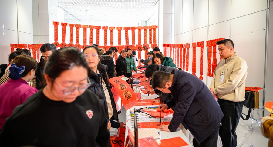書(shū)法家和市民揮毫潑墨為基層群眾送祝福