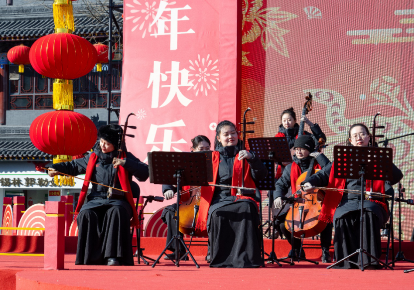 2月12日上午,在呼和浩特大召廣場上,“新民樂”音樂會精彩上演,傳統(tǒng)民樂與現(xiàn)代音樂交織融合,為觀眾帶來一場別具一格的聽覺盛宴。