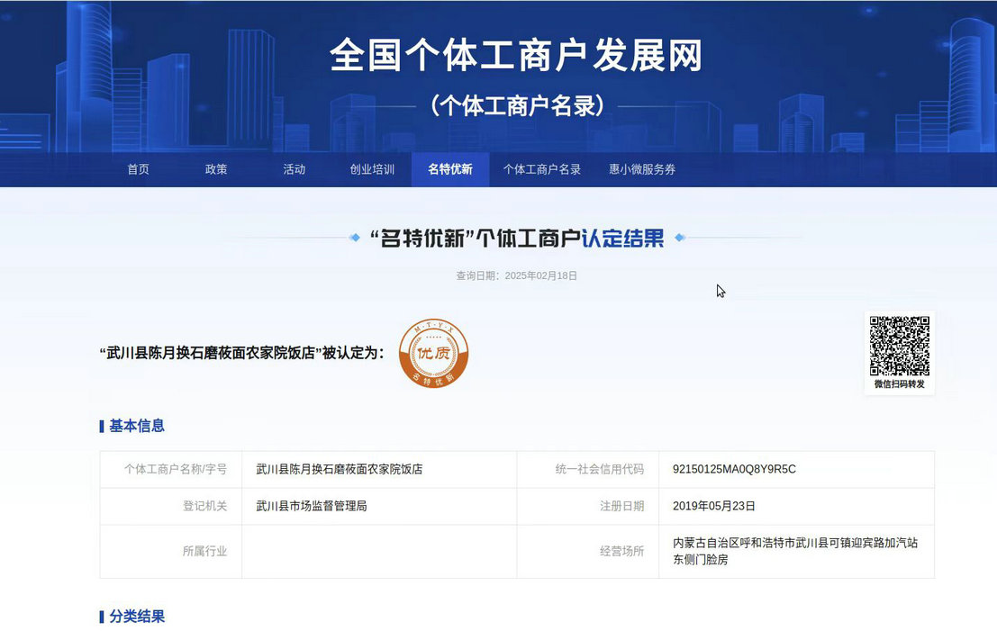 北疆新聞呼和浩特2月19日消息(記者 張鑫)近日,呼和浩特市首批27戶個體工商戶獲評全國“名特優(yōu)新”個體工商戶,覆蓋餐飲、批發(fā)零售、食品加工、居民服務等多個行業(yè)領域。