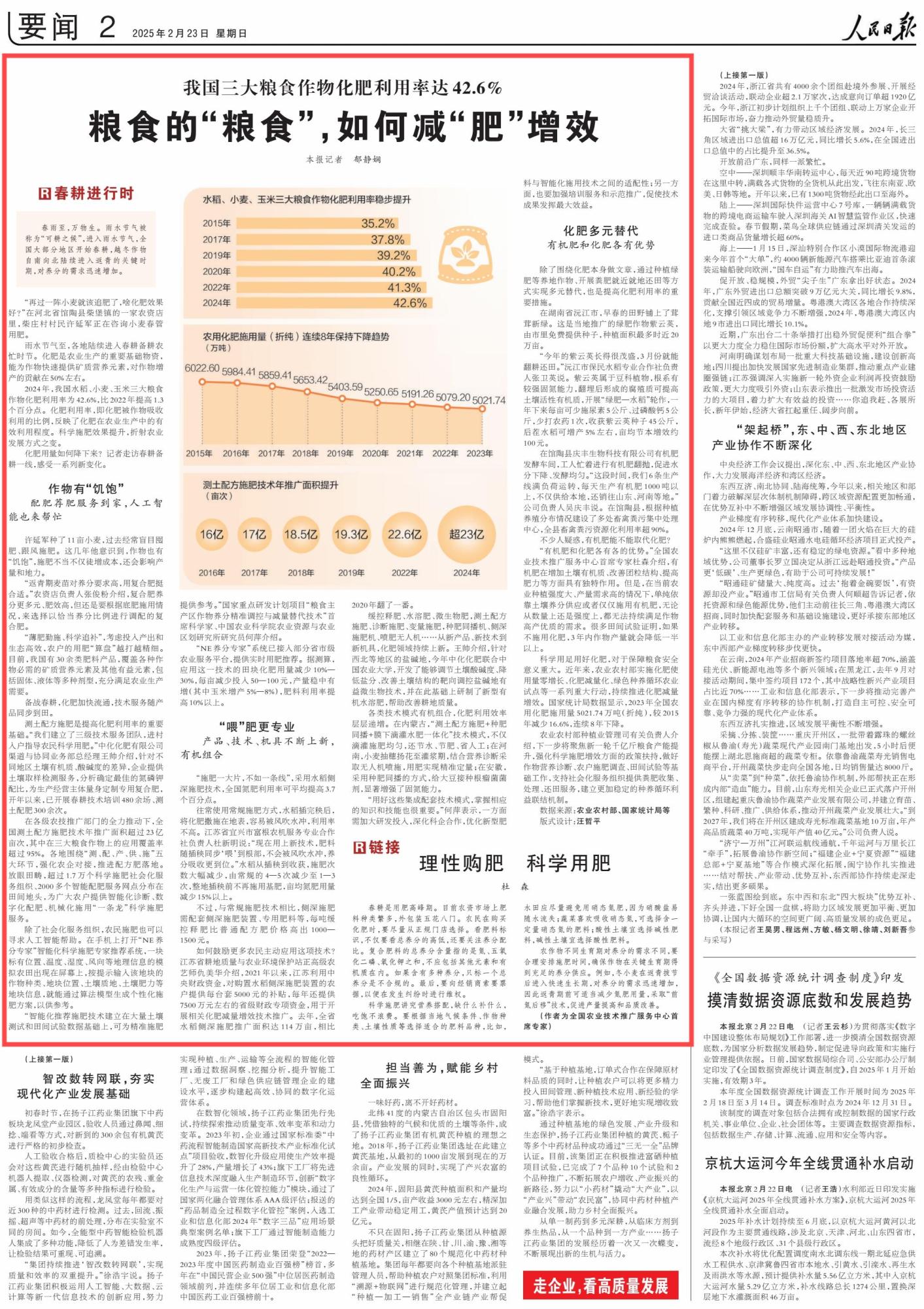 2025年2月23日,《人民日?qǐng)?bào)》第2版刊發(fā)題為《糧食的“糧食”,如何減“肥”增效》的文章,其中報(bào)道了內(nèi)蒙古“測(cè)土配方施肥+種肥同播+膜下滴灌水肥一體化”技術(shù)模式。