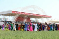 活動第二站來到包頭市第一工人文化宮,激情上演了一場融合全息投影、詩歌朗誦、圖書分享、現場訪談、情景劇、音舞詩畫等多元形式的讀書分享展示展演?;顒臃譃椤拔幕瘋鞒?nbsp;紅色覺醒”“鋼花飛濺 工業(yè)繁榮”“民族融合 守望相助”“稀土之都 風光無限”四個篇章,以時間線貫通歷史,以獨特視角跨越時空與地域界限,生動講述了發(fā)生在包頭的北疆文化故事。
