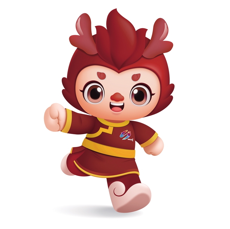 吉祥物“赤龍兒”,寓意鮮明、簡(jiǎn)潔響亮,又有舉辦地“赤峰”的內(nèi)涵。吉祥物活潑可愛(ài)、聰慧靈動(dòng),身著以赭紅色(赤峰紅山山體顏色)和黃色為整體色彩的民族服飾,既凸顯“紅山文化”特色,又體現(xiàn)運(yùn)動(dòng)會(huì)激情熱烈、陽(yáng)光活力的氛圍;臉上洋溢著自豪的笑容,以奔跑的姿態(tài)歡迎各地來(lái)賓蒞臨赤峰,充分展現(xiàn)內(nèi)蒙古各族人民勤勞樸實(shí)、熱情好客的優(yōu)良品質(zhì)。