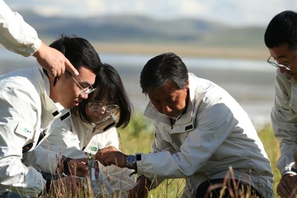 馬騰帶領(lǐng)團(tuán)隊在內(nèi)蒙古錫林郭勒大草原采集自然發(fā)酵乳。左三為馬騰。受訪者供圖