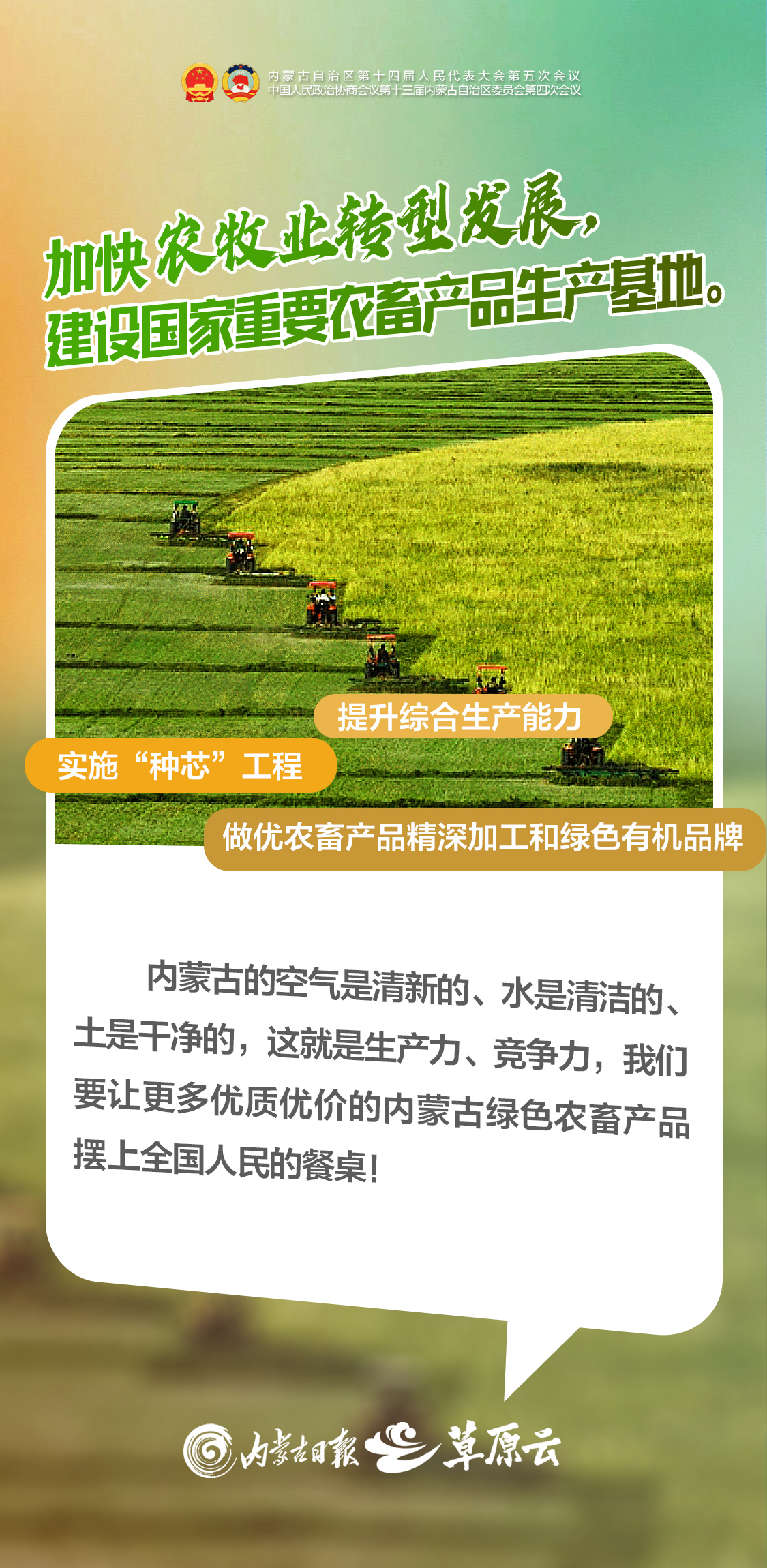 建設(shè)“兩個屏障”、“兩個基地”、“一個橋頭堡”,是習(xí)近平總書記著眼全國發(fā)展大局賦予內(nèi)蒙古的戰(zhàn)略定位和使命任務(wù),是自治區(qū)全面推進(jìn)中國式現(xiàn)代化的根本遵循。