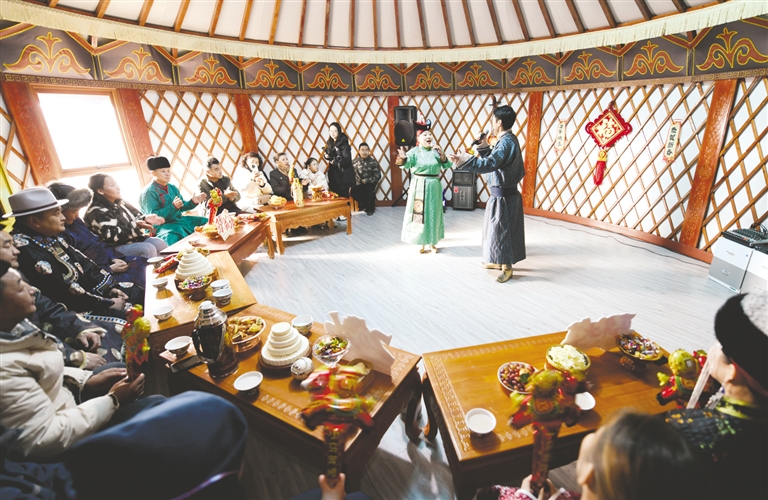 “今天烏蘭牧騎來了,我們周邊的牧民聚到一起,唱歌跳舞,這比守在電視前看晚會熱鬧多了!”吉雅圖高興地說,這才是真正送到家門口的團圓,是我們草原人最地道、最暖心的新年。