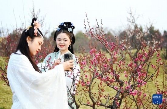 隨著氣溫回暖,陜西省西安市秦嶺終南山腳下長安唐村內(nèi)四千余株梅花競相綻放,吸引游人前來踏春賞花。長安唐村位于西安市長安區(qū)王曲街道,在古村落修復(fù)保護的基礎(chǔ)上形成了農(nóng)業(yè)、文化、旅游三大產(chǎn)業(yè),正在以農(nóng)文旅融合發(fā)展為帶動,促進區(qū)域鄉(xiāng)村振興。