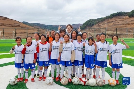 四川省涼山州昭覺縣瓦吾小學(xué)坐落于海拔約2700米的大涼山上,因?yàn)榈乩砦恢闷?、一年四季云霧繚繞而得名“云端小學(xué)”。校長(zhǎng)曲比史古2018年組建女足球隊(duì),希望通過足球讓這些大山里的女孩子收獲快樂,也獲得更多人生可能性。過去幾年,孩子們都是在一片“手工自制”的泥地球場(chǎng)上訓(xùn)練,經(jīng)常受傷。得知瓦吾小學(xué)的情況后,中國足協(xié)、支付寶以及女足國腳們決定一起為這支校園女足隊(duì)捐贈(zèng)一座“玫瑰夢(mèng)想球場(chǎng)”。2022年底,全國第二座中國女足主題球場(chǎng)——“玫瑰夢(mèng)想球場(chǎng)”在大涼山上落成。