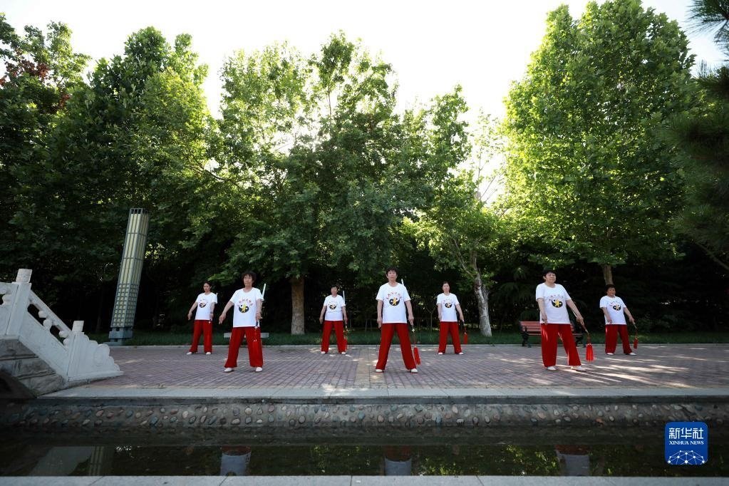 6月9日,太極拳愛好者在河北省邢臺(tái)市任澤區(qū)人民廣場(chǎng)展示王其和太極拳。