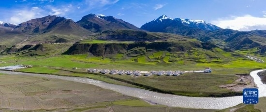 6月22日在國道317線昌都段拍攝的丁青縣的村莊(無人機(jī)照片)。