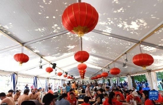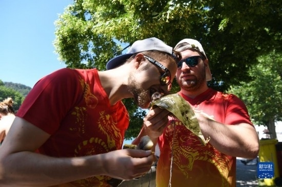 6月25日,在瑞士埃格利紹,人們參加賽龍舟活動(dòng)。