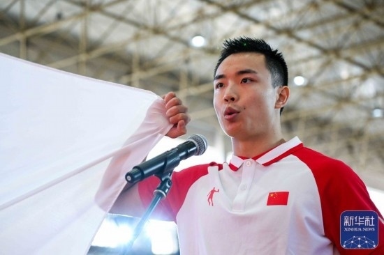 運動員代表曹茂園在成立大會上宣誓。 新華社記者 顏麟蘊 攝
