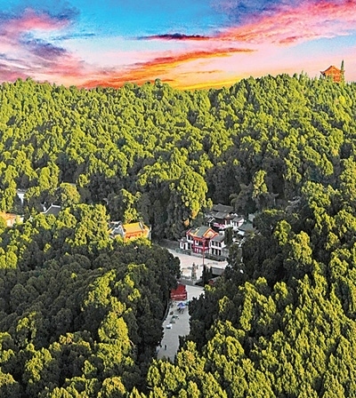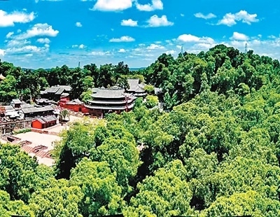 遠(yuǎn)眺四川省梓潼縣七曲山風(fēng)景區(qū),綠樹藍(lán)天相映成趣。本文圖片均由李 貧攝