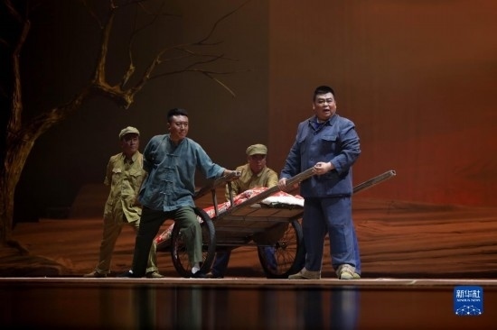 8月29日,演員在現(xiàn)代評(píng)劇《沙海情》中表演。