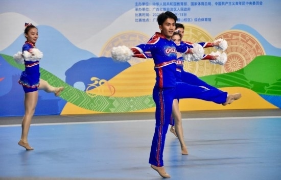 學(xué)青會(huì)校園組啦啦操比賽場(chǎng)景。新華社記者 鄭昕 攝