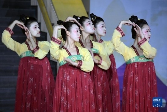 12月4日,在清華大學藝術博物館,來自北京師范大學的學生表演舞蹈《宮樂圖》。