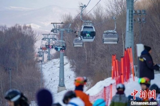 滑雪運(yùn)動員乘坐纜車上山滑雪 趙宇航 攝