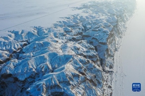 這是在新疆阿勒泰地區(qū)福海縣拍攝的海上魔鬼城冬景(12月21日攝,無(wú)人機(jī)照片)。