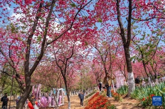 近日,云南昆明圓通山公園的櫻花進(jìn)入盛花期,吸引眾多市民和游客前來(lái)觀花賞景,樂(lè)享春日時(shí)光。