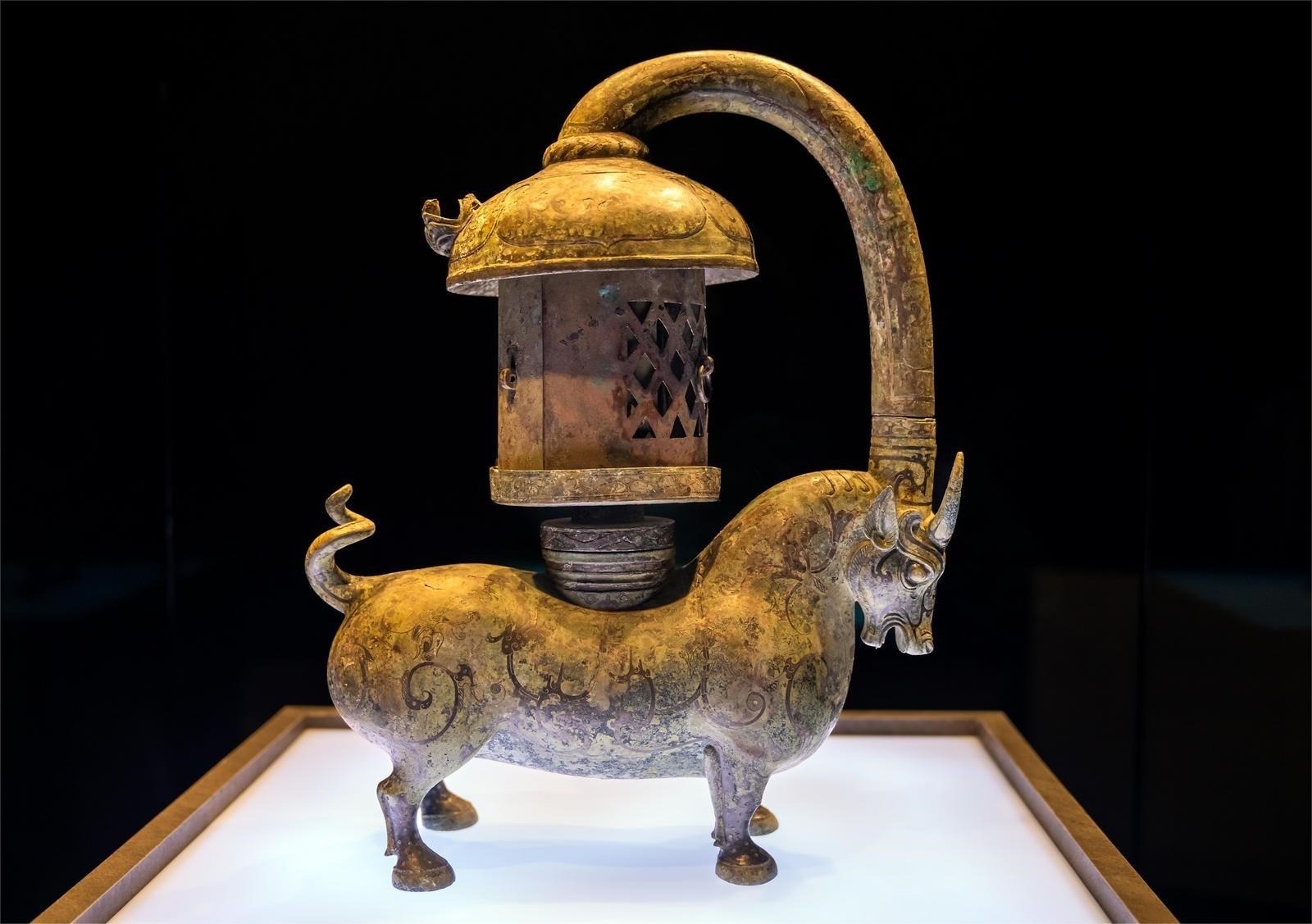 2000年前的錯(cuò)金銀銅牛燈,環(huán)保,無(wú)煙。