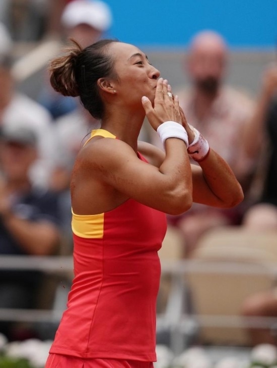 8月1日,張之臻在比賽中。 當(dāng)日,在巴黎奧運(yùn)會網(wǎng)球混合雙打半決賽中,中國組合王欣瑜/張之臻戰(zhàn)勝荷蘭組合舒爾斯/庫爾霍夫,晉級決賽。 新華社記者 萬象 攝