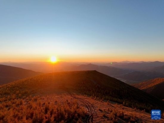 10月7日在河北省承德市豐寧滿族自治縣拍攝的清晨景色(無(wú)人機(jī)照片)。