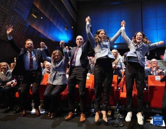 這是2024年7月24日,在巴黎進(jìn)行的國際奧委會(huì)第142次全會(huì)上,美國鹽湖城代表團(tuán)成員慶祝獲得2034年冬奧會(huì)舉辦權(quán)。新華社記者 孫非 攝