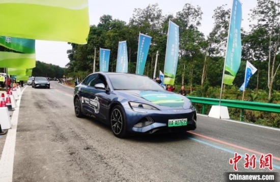 12月29日,環(huán)熱帶雨林國家公園旅游公路項目在海南瓊中黎族苗族自治縣黎母山鎮(zhèn)舉行通車儀式。第一批新能源車隊集結出發(fā)。中新網(wǎng)記者 張茜翼 攝